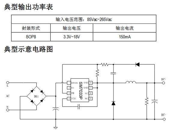 在 IoT 小家電、智能面板或傳感節(jié)點(diǎn)里,工程師最怕的就是“待機(jī)電源”——功率不大,卻占掉寶貴的 PCB 面積和 BOM 成本。明微推出的 SM7033PK,用一顆 SOP-8 封裝就把 85-265 VAC 輸入、3.3-18 V/150 mA 輸出的恒壓方案做到了極致精簡:整流橋之后,只需 5 個外圍元件即可上電運(yùn)行,真正讓“小體積”與“低成本”兼得。