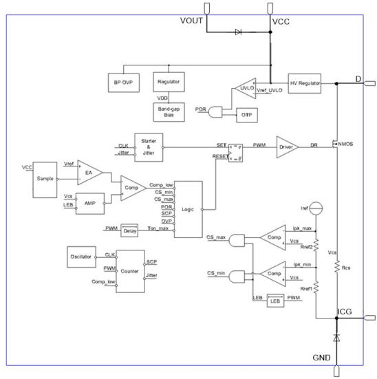 固定5V輸出:內(nèi)部高精度分壓電阻+參考源,省掉TL431、光耦、反饋電阻